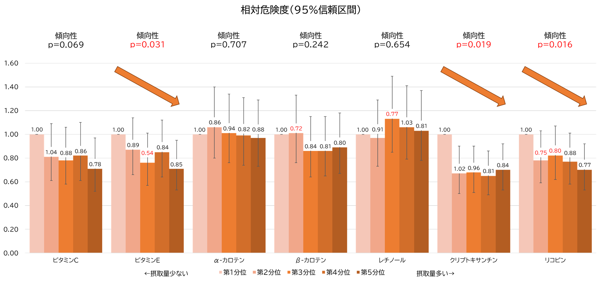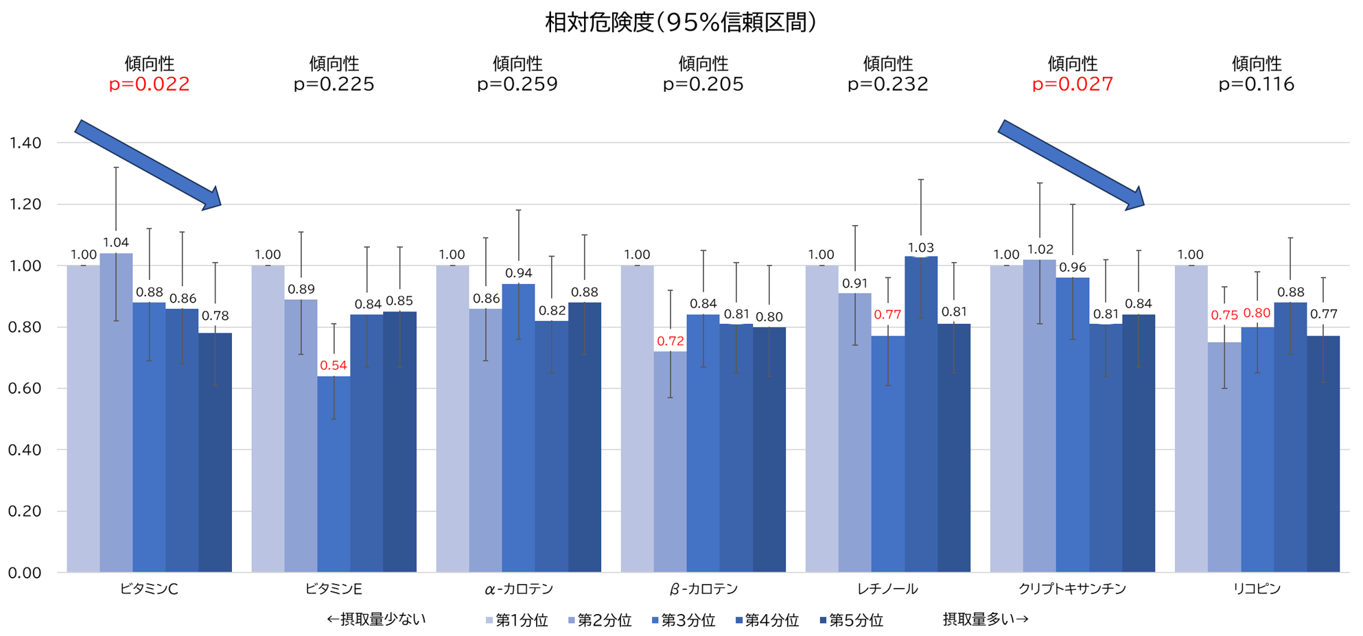 図1.男性における抗酸化物質摂取と肺炎死亡リスクとの関係