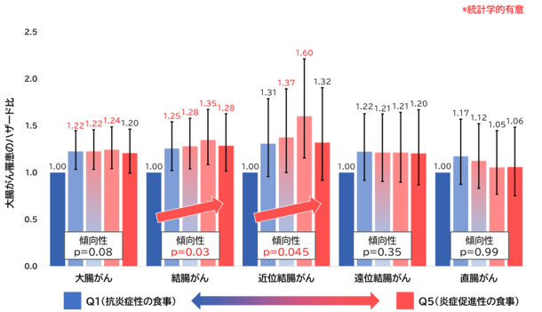 日本人男性では、食事の炎症スコアが高いほど結腸がんのリスクが高かった