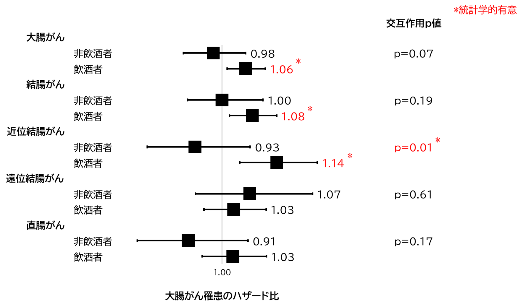 図2. DIIと大腸がん罹患リスクにおける飲酒習慣の有無による交互作用